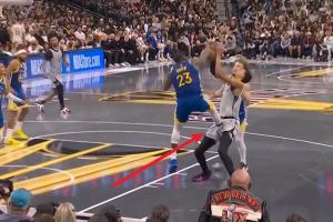 在回放时,我们还可以看到追梦在尝试封盖时还疑似踢到了文班的裆部;在这次对抗之后,文班还是完成了该场比赛!